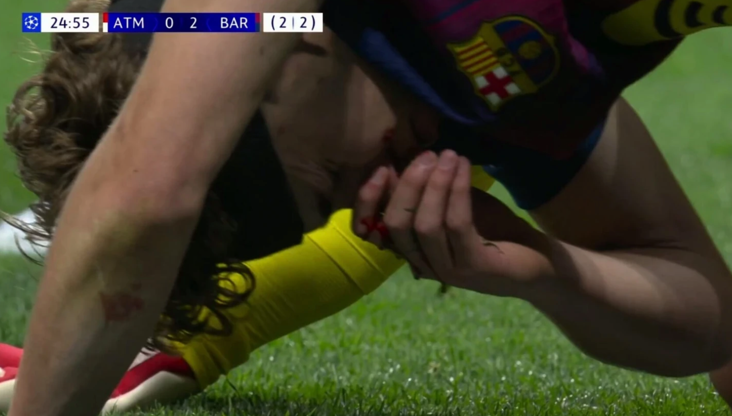 Полузащитник «Барселоны» Фермин Лопес разбил нос в первом тайме ответного матча четвертьфинала Лиги чемпионов против мадридского «Атлетико». Встреча проходит на стадионе «Сивитас Метрополитано» под руководством арбитра Клемана Тюрпена. К перерыву каталонский клуб ведёт 2:1. Игрок получил повреждение, приземлившись лицом на шипы бутсы голкипера хозяев Хуана Муссо.