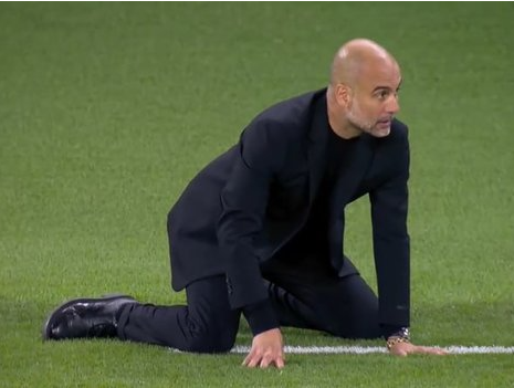 Главный тренер «Манчестер Сити» Хосеп Гвардиола встал на четвереньки после опасного момента у ворот «горожан» в финале Лиги чемпионов-2022/23 против «Интера».
